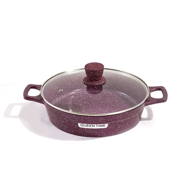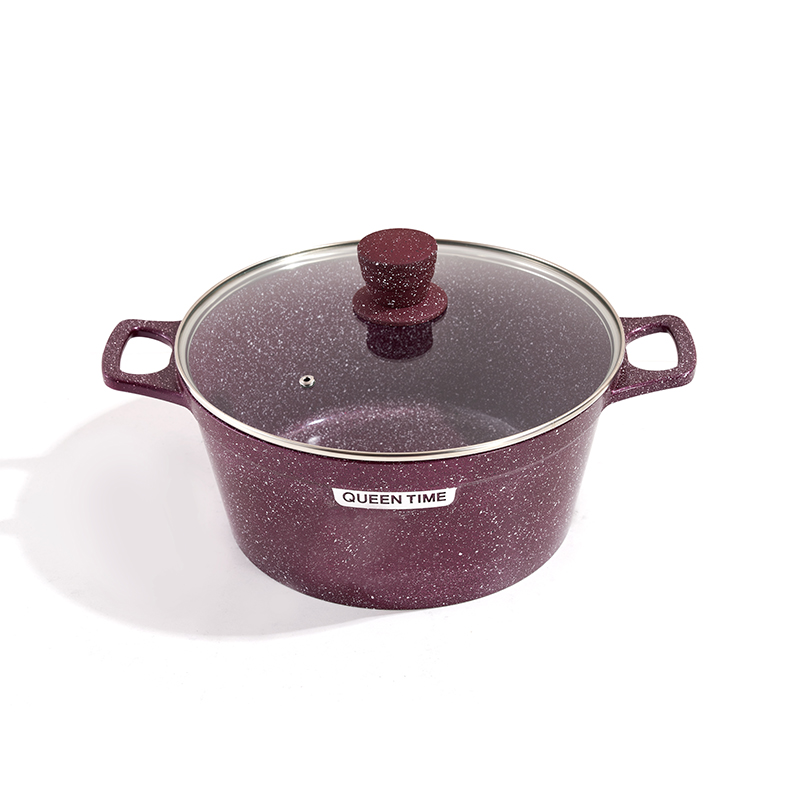 Cuerpo texturizado de granito con tapas de vidrio transparente, fundición a presión sin costuras, asas resistentes al calor a juego, tamaños múltiples para guisar y estofar, compatible con todas las estufas, fácil de limpiar.