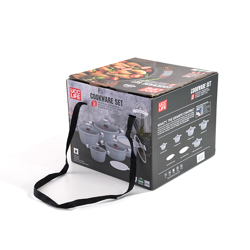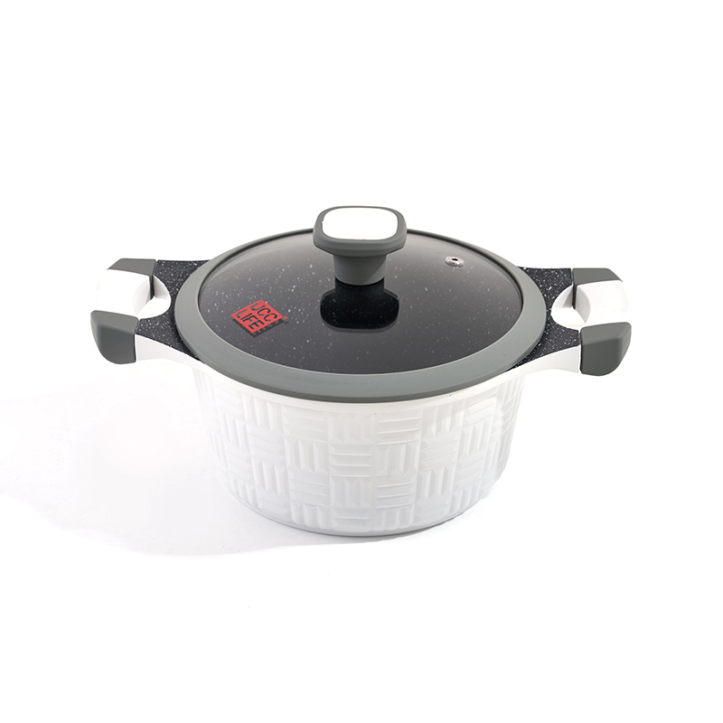 Cuerpo de textura tejida, asas resistentes al calor de doble tono, combinadas con tapas negras, transparentes y de silicona, tamaños múltiples para guisar y estofar, interior antiadherente, fácil de limpiar y duradero.
